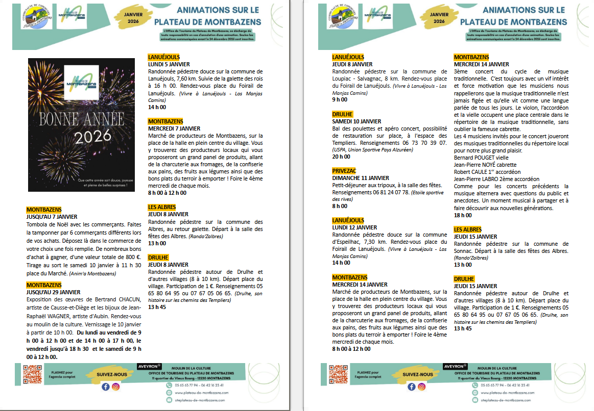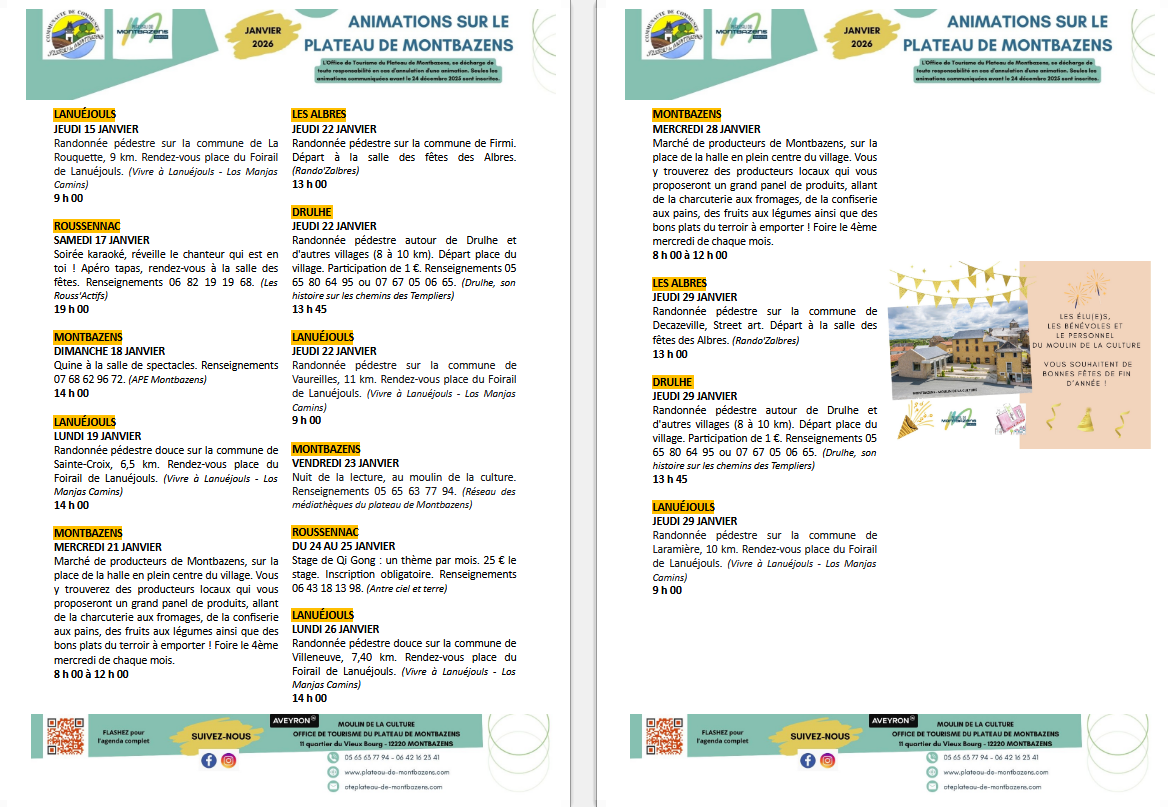 Agenda janvier 2026 sur le plateau de Montbazens